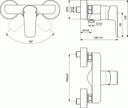 Смеситель Ideal Standard B0716AA Ceraplan III для душа, Chrome (хром)
