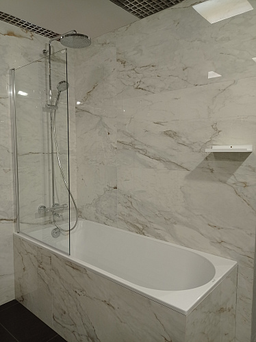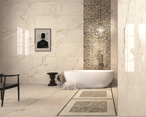 Керамогранит под мрамор, размер 120*120. Поверхность полированная. Применяется  для ванной, кухни, прихожей, гостиной, технических и общественных помещений. Может использоваться для наружных работ. Универсален, подходит для стилей: Неоклассический, Современный,  Классический.