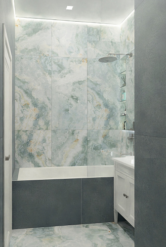 Керамогранит под мрамор размером 60х120 см, в стиле Неоклассика, Современный. Поверхность глянцевая. Подходит для ванных комнат, кухни, жилых и общественных помещений.