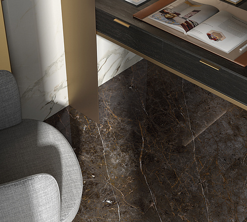 Керамогранит под мрамор размером 60х120 см, в стиле Неоклассика, Современный. Поверхность глянцевая. Подходит для ванных комнат, кухни, жилых и общественных помещений.