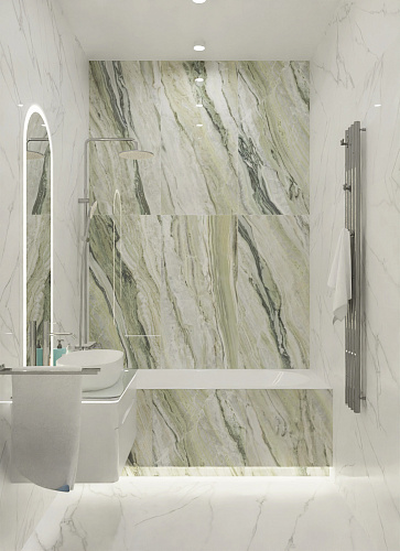 Керамогранит под мрамор, размер 60х120м. В стиле Неоклассика, Современный. Поверхность полированная. Подходит для ванной комнаты, кухни, жилых и общественных помещений.