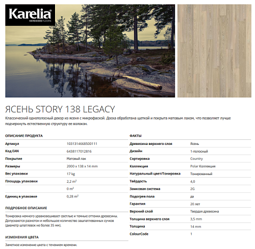 Паркетная доска Karelia ASH STORY 138 LEGACY, 14 мм