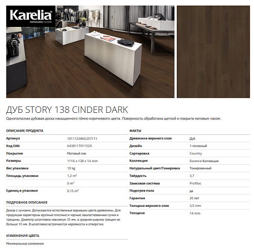 Паркетная доска Karelia OAK STORY 138 CINDER DARK, 14 мм
