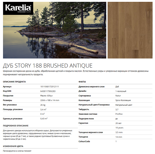 KARELIA ПАРКЕТНАЯ ДОСКА OAK STORY 188 BRUSHED ANTIQUE