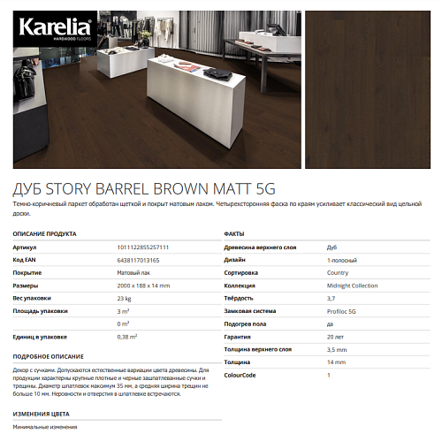 Паркетная доска Karelia OAK STORY BARREL BROWN MATT, 14 мм