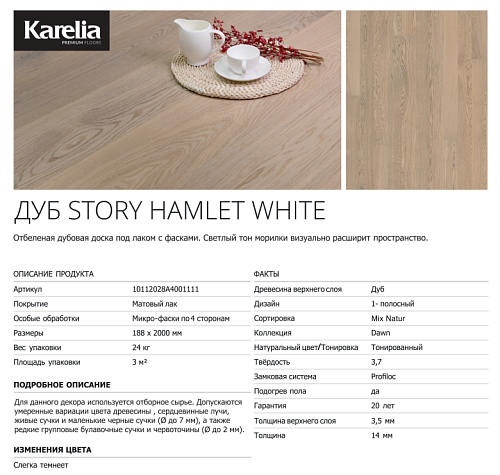 Паркетная доска Karelia OAK STORY HAMLET WHITE, 14 мм