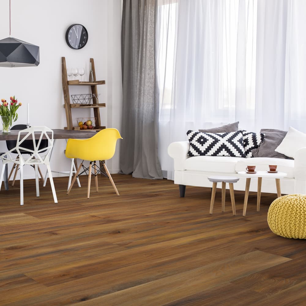 Паркетная доска Tango изготовлена из высококачественной древесины, естественная структура дерева дополнительно обрабатывается краской и шлифованием, создавая разнообразные узоры и стиль.