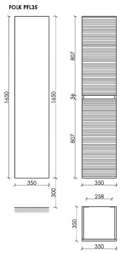 Шкаф-пенал подвесной с рельефным фасадом SANCOS Folk, две дверцы, петли с доводчиками, расположение петель R/L, 350х350х1650 мм, цвет Bianco, арт. PFL35W