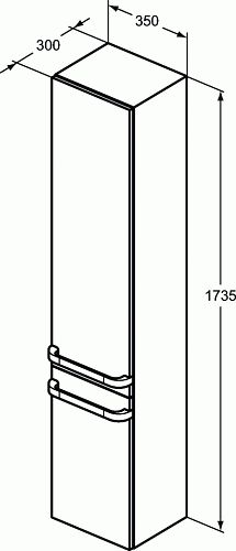 TONIC II Узкий пенал (ширина 35 см), 2 дверцы, система плавного закрытия, для подвесного монтажа. В комплекте: крепеж, 3 стеклянные полки в верхней части, 1 стеклянная полка в нижней части. Левая версия. Ручки в комплект не включены.