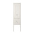 Высокий напольный пенал в белом матовом цвете из массива ясеня с эффектом открытой поры с распашной дверцей и выдвижным ящиком. Фасад украшен классической фурнитурой. Пространство за дверцей разделено несколькими регулируемыми полками. Петли для крепления дверцы расположены справа.