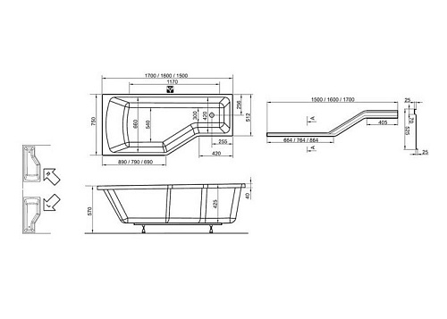 Передняя панель для ванны Ravak CZ14100A00 BeHappy L, 170 см, белый