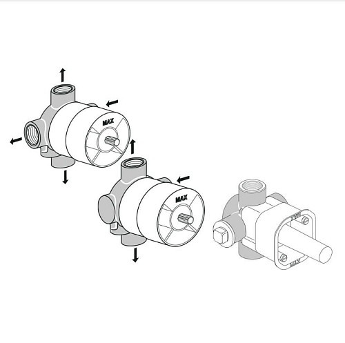 Многоходовой переключатель, встраиваемая часть G1/2", тип 3/4 (1 вход, 3 выхода), латунный корпус, 3-ходовое ручное переключение.
