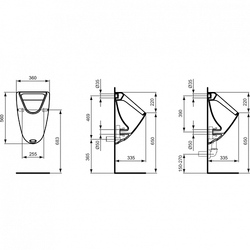 Обязательное оборудование: K822367 - Сифон для писсуара, горизонтальный выпуск;