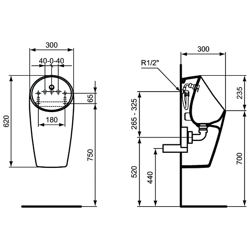 Писсуар Ideal Standard E183201 Sphero подвесной 30х62 см, MAXI, со стандартным смывом, Euro White (евробелый)