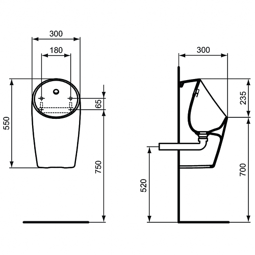 Писсуар Ideal Standard E189601 Sphero подвесной 30х55 см, MIDI Waterless, Euro White (евробелый)
