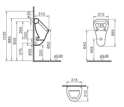 Модель сконструирована для подвода воды из стены. Для смыва рекомендуется флашер с параметрами 1 л воды под давлением 3 атмосферы. Материал писсуара фарфор VitrA обладает повышенной ударостойкостью.