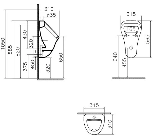 Модель сконструирована для подвода воды сверху. Для смыва рекомендуется флашер с параметрами 1 л воды под давлением 3 атмосферы. Материал писсуара фарфор VitrA обладает повышенной ударостойкостью.