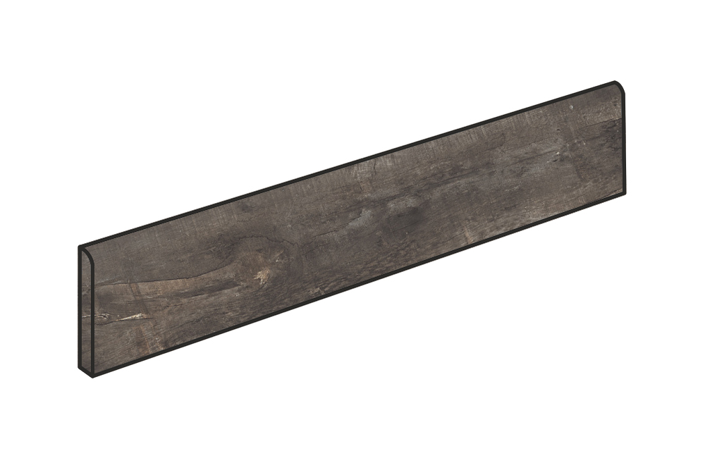 Декоративный керамический элемент (плинтус) для укладки с напольной плиткой в кухню, коридор, прихожую. Матовая поверхность, формат плинтуса 6х120 см. Текстура под дерево.