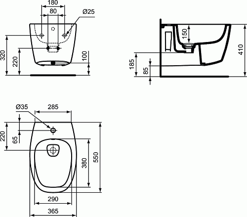 Биде Ideal Standard T509801 Dea подвесное 37х55 см, с 1-м отверстием под смеситель, Euro White (евробелый)