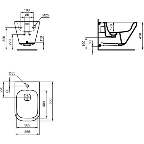 Биде Ideal Standard K523601 Tonic II подвесное 36х56 см, Euro White (евробелый)