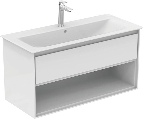 Тумба Ideal Standard E0828B2 Connect Air для раковины 100х44 см, подвесная, Glossy White + Matt White (белый глянцевый + белый матовый)