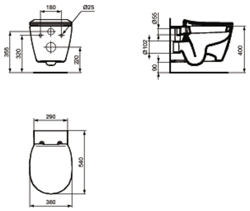 Чаша унитаза Ideal Standard E771801 Connect подвесного 36х54 см, Euro White (евробелый)