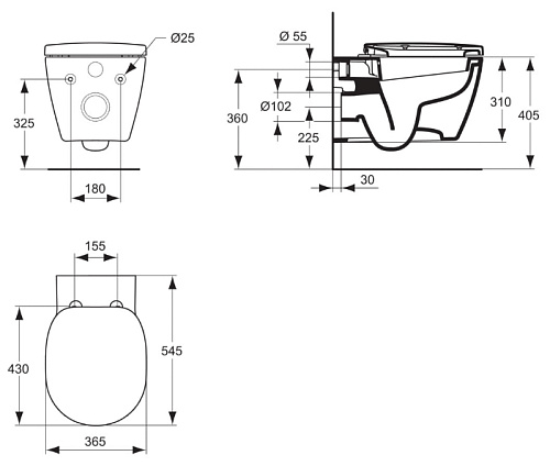 CONNECT Подвесной унитаз, глубокий смыв. Дополнительно заказывается сидение и крышка E712701/E712801/E772301/E772401.