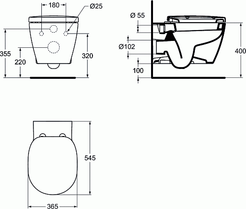 CONNECT Подвесной унитаз (чаша), глубокий смыв. Дополнительно заказывается сидение и крышка E712701 или E712801.
