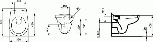 Подвесной унитаз (чаша), глубокий смыв, без сиденья и крышки. Для монтажа с сиденьем-крышкой W302601 или W303001.