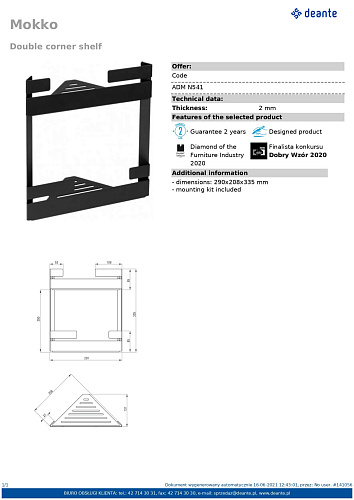 Полка Deante ADM_A541 Mokko для душа, угловая двойная, белый