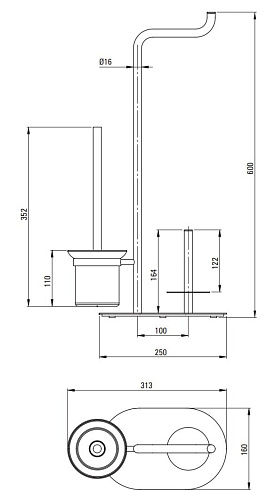 Стойка Deante ADI_N732 Silia с держателем для туалетной бумаги и ершиком, Nero (черный)