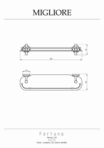 Полка с галереей серии Fortuna бренда Migliore длиной 50 см — это функциональный аксессуар для ванной комнаты в классическом стиле. Полка вешается над раковиной. На ней вы сможете разместить все необходимые косметические средства, которые будут всегда у вас под рукой. Ограничитель по переднему краю полки не позволит упасть тюбикам и предметам. Изделие выполнено из латуни и имеет высококачественное хромо-никелевое покрытие, которое при правильном уходе надолго сохранит свой блеск. Рекомендуется использовать чистящее средство бренда Migliore для смесителей и аксессуаров с хромированным покрытием.