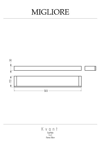 Искусственный камень Corian (Кориан). Полка серии Kvant бренда Migliore длиной 58 см — это функциональный аксессуар для ванной комнаты. Полка вешается над раковиной. На ней вы сможете разместить все необходимые вам косметические средства, которые будут всегда у вас под рукой. Стекло легко чистится тряпочкой и/или средством для чистки стекол. Изделие выполнено из высококачественной латуни и имеет гальваническое покрытие золотом 24 карата. Внимание: золотое покрытие очень деликатное и для ухода рекомендуется использовать чистящее средство бренда Migliore для смесителей и аксессуаров с деликатными покрытиями бронза, золото, медь и протирать мягкой ветошью.