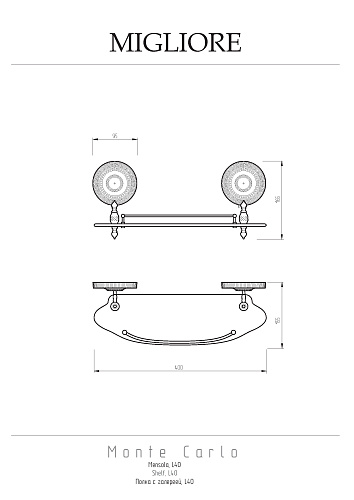 Полка с галереей коллекции Montecarlo бренда Migliore длиной 60 см — это функциональный аксессуар для ванной комнаты в классическом стиле. Полка вешается над раковиной. На ней можно разместить все необходимые косметические средства, которые будут всегда у вас под рукой. Ограничитель по переднему краю полки не позволит упасть тюбикам и предметам. Стекло легко чистится тряпочкой и/или средством для чистки стекол.