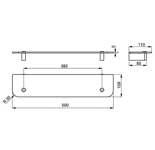 CONNECT Стеклянная полочка, прозрачное закаленное стекло, держатели - хром, с 2-мя крепежами, максимальная нагрузка 8 кг.