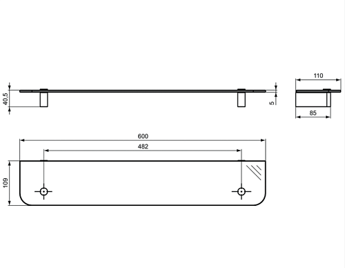 Полочка Ideal Standard N1394AA Connect стеклянная 60 см, Chrome (хром)