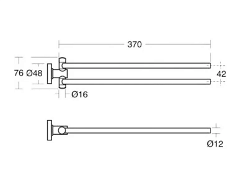 IOM Двойной полотенцедержатель, с крепежом. Поворотный на 180°, диаметр трубы 12 мм.