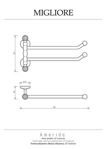 Полотенцедержатель Migliore 16570 Amerida двойной поворотный, бронза/Swarovski