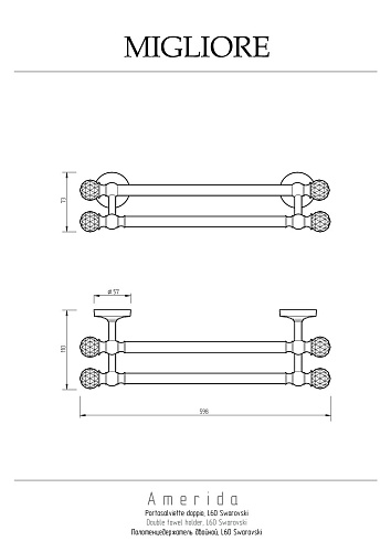 Полотенцедержатель двойной коллекции Amerida бренда Migliore – функциональный аксессуар для ванной комнаты. Его длина 60 см, и он подходит для любого полотенца для рук, лица или тела. Аксессуар украшен кристаллами Сваровски. Изделие выполнено из высококачественной латуни и имеет гальваническое покрытие золотом 24 карата. Внимание: золотое покрытие очень деликатное и для ухода рекомендуется использовать чистящее средство бренда Migliore для смесителей и аксессуаров с деликатными покрытиями бронза, золото, медь и протирать мягкой ветошью.