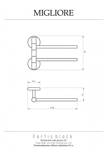 Полотенцедержатель Migliore 31765 Fortis двойной поворотный, черный матовый
