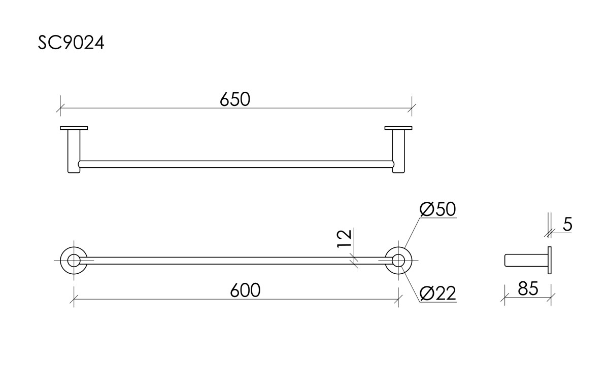 Держатель для полотенец; Материал - латунь; Форма розетки - круглая; Длина 600 мм; Экстра прочное покрытие PVD; Цвет брашированный никель