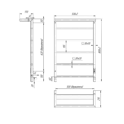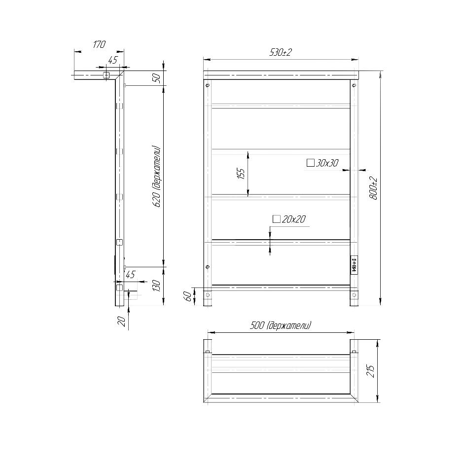 Оснащение Полотенцесушитель электрический - 1 шт, паспорт изделия - 1 шт, комплект для монтажа - 1 шт, держатель телескопический - 4 шт. (квадрат)