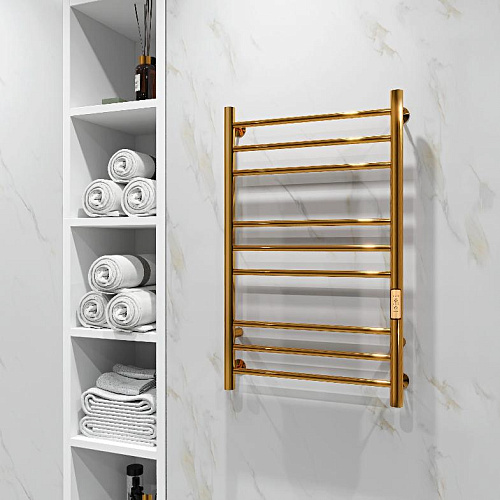 Электрический полотенцесушитель Line Trinity 80/50 INDIGO – роскошь и функциональность в золотом исполнении. Line Trinity – это элегантная лесенка, сочетающая в себе изысканный дизайн и передовые технологии. Золотой цвет придает ванной комнате особую роскошь. Размер 80x50 см оптимален для большинства ванных комнат. Встроенный таймер позволяет экономить электроэнергию и поддерживать комфортную температуру. Универсальное подключение обеспечивает простую установку с любой стороны, как справа, так и слева. Возможность как прямого монтажа через провод напрямую в розетку, так и скрытого монтажа, который позволяет скрыть провода и сохранить эстетику интерьера. Все полотенцесушители Indigo застрахованы и имеют гарантию 3 года.