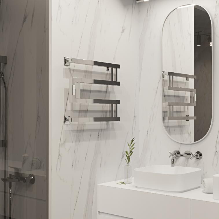 Полотенцесушитель электрический INDIGO Muza в размере 400х500 (ВхШ) выбирают за его технологичность и форму. Модель имеет терморегулятор нагрева, у которого три режима: 40, 45, 50 градусов и таймер на отключение через 2, 4, 6 часов. Подключение осуществляется двумя способами: скрытое подключение к электропроводке через модуль скрытого подключения в стену или прямым электропроводом. Длина прямого провода 1,1 метр. Изделие полированное. Полотенцесушитель относится к энергоэффективным изделиям, потребляемая мощность в данном размере 128 Вт. Специальная технология нагревательного кабеля защищает полотенцесушитель от перегрева, что влияет на длительные сроки службы. В комплектации идут 3 телескопических держателя, комплект монтажа и гарантийный паспорт. Полотенцесушитель INDIGO Muza застрахован и имеет гарантию 3 года.