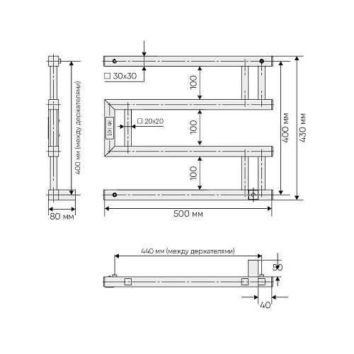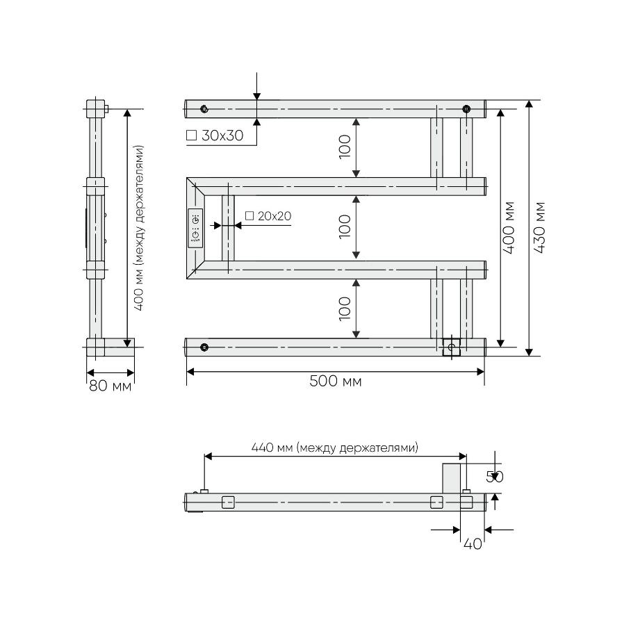 Оснащение Полотенцесушитель электрический - 1 шт, паспорт изделия - 1 шт, комплект для монтажа - 1 шт, держатель телескопический - 3 шт.