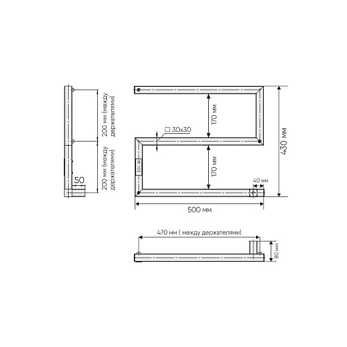 Оснащение Полотенцесушитель электрический - 1 шт, паспорт изделия - 1 шт, комплект для монтажа - 1 шт, держатель телескопический - 3 шт.