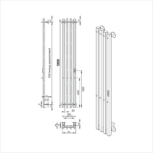 Оснащение Полотенцесушитель электрический - 1 шт, провод для подключения - 1 шт, паспорт изделия - 1 шт, комплект для монтажа - 1 шт, держатель телескопический - 4 шт.