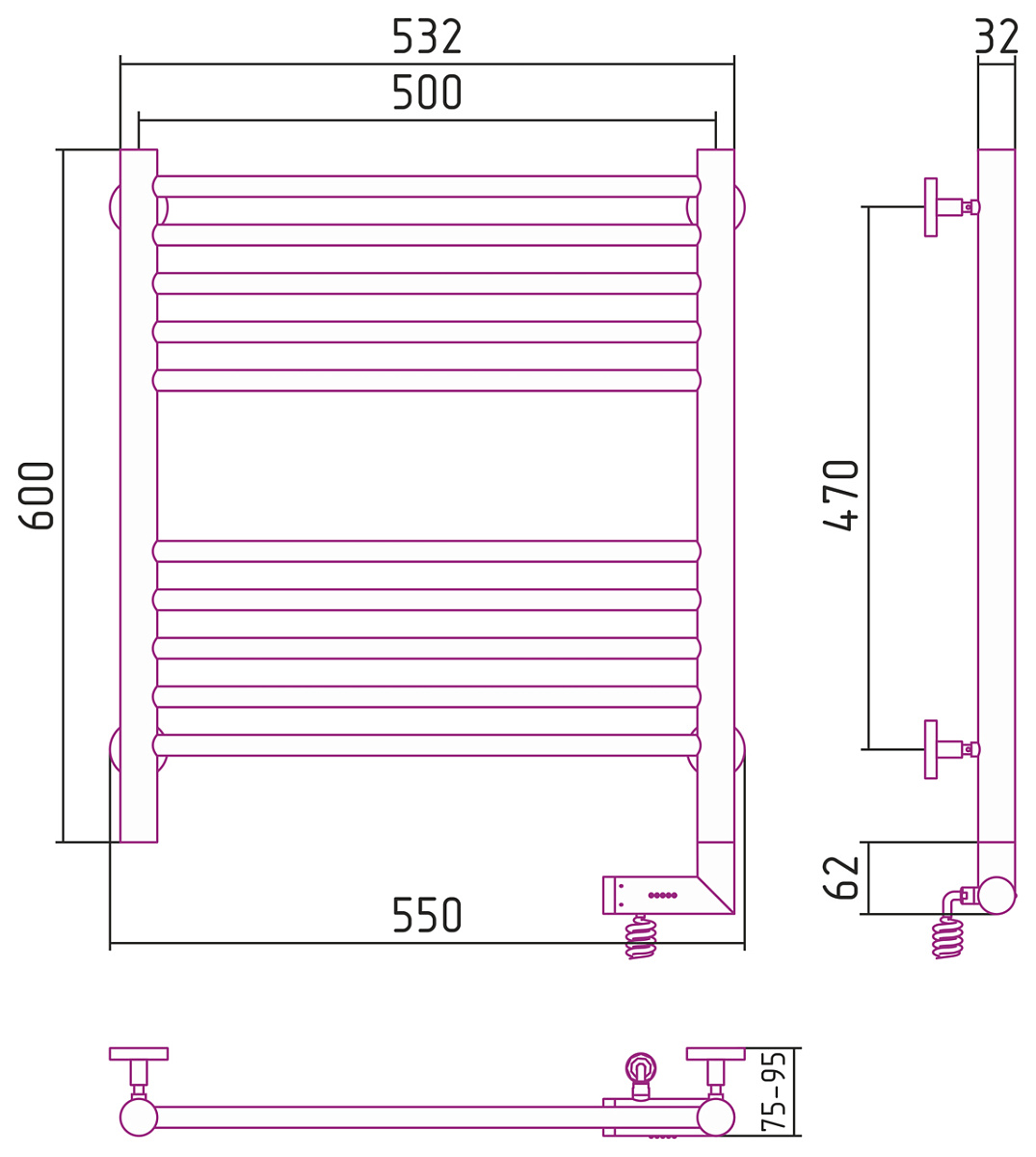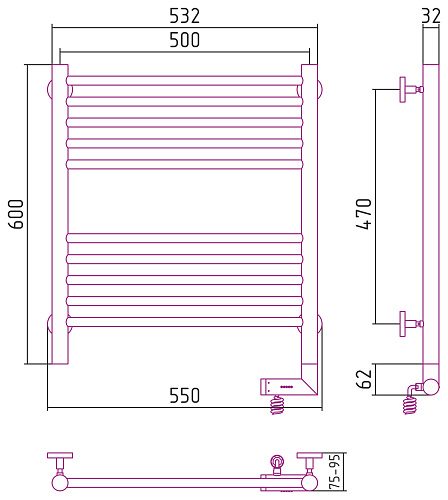 Полотенцесушитель электрический Сунержа Богема 31-5205-6050