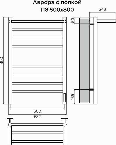 Полотенцесушитель электрический Terminus АВРОРА С ПОЛКОЙ 4670078556974