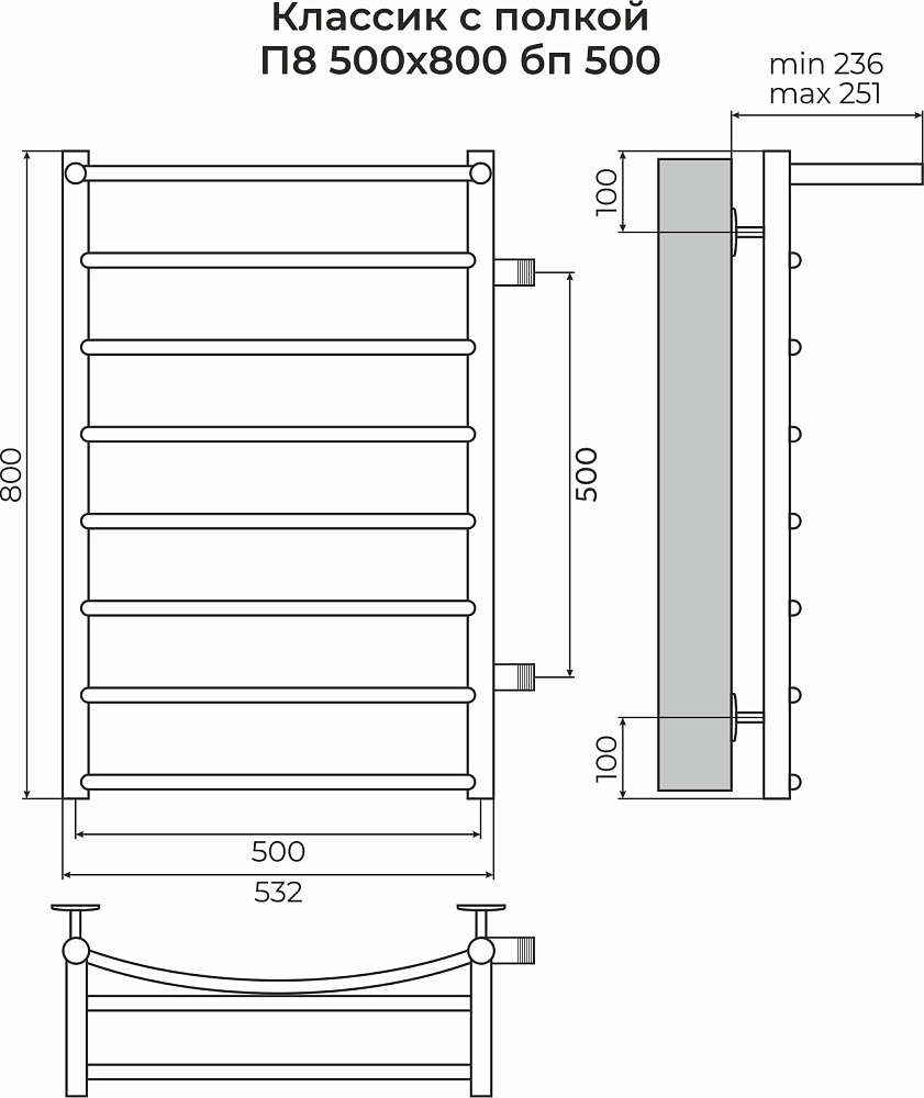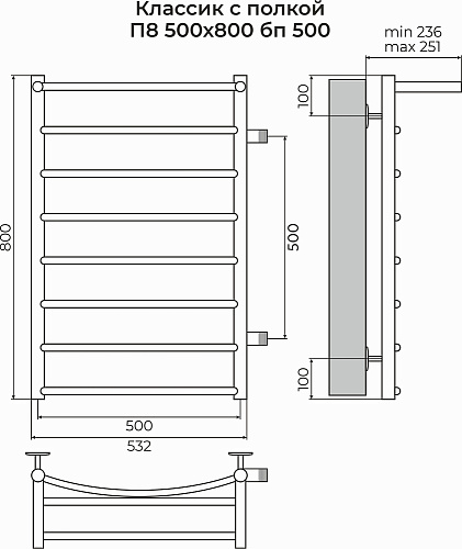 Полотенцесушитель электрический Terminus КЛАССИК С ПОЛКОЙ 4670078556769
